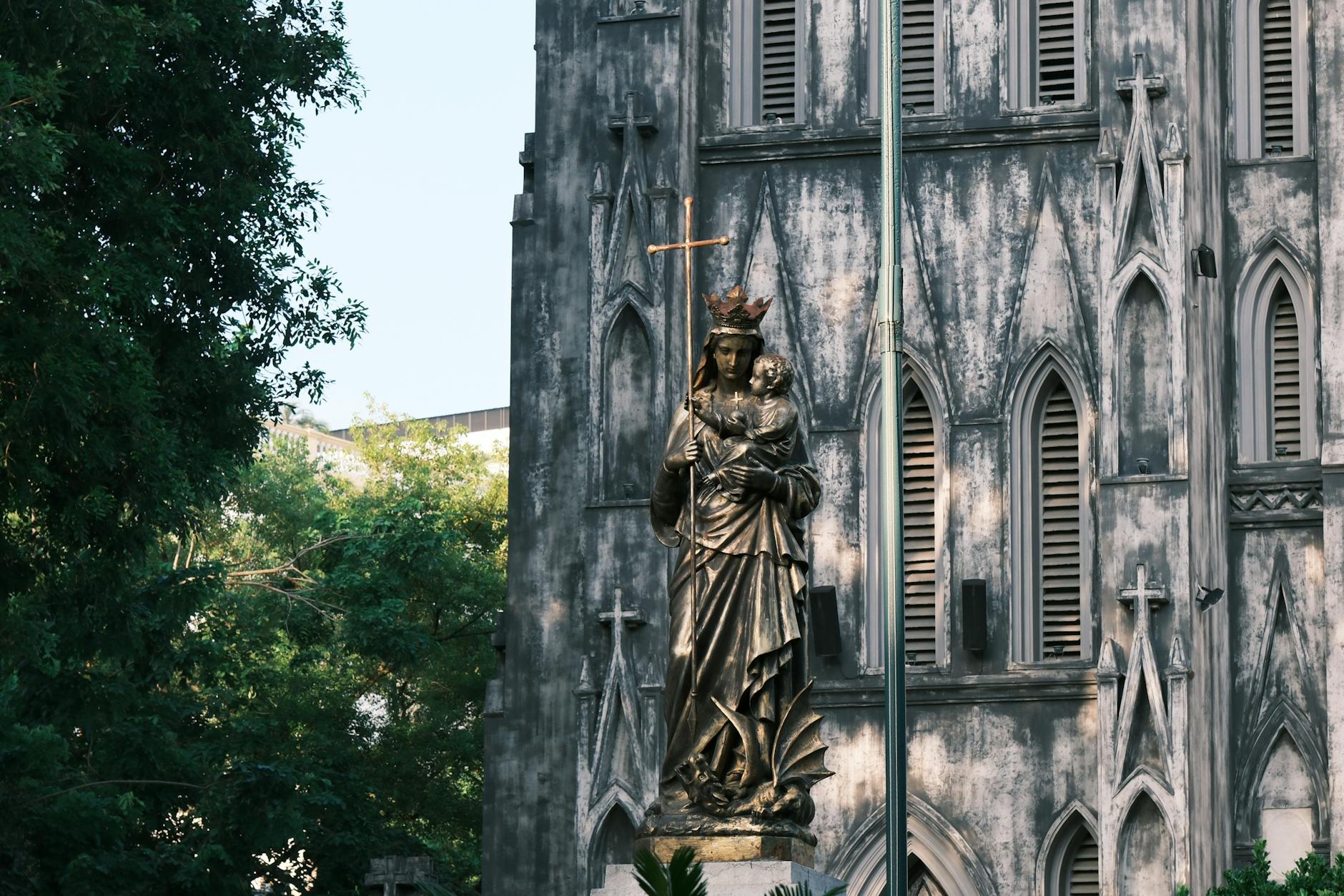 Image n°4 – Statue de la Sainte Vierge Marie et de Son Enfant Jésus devant une Eglise – Photo de tu nguyen sur Pexels.com